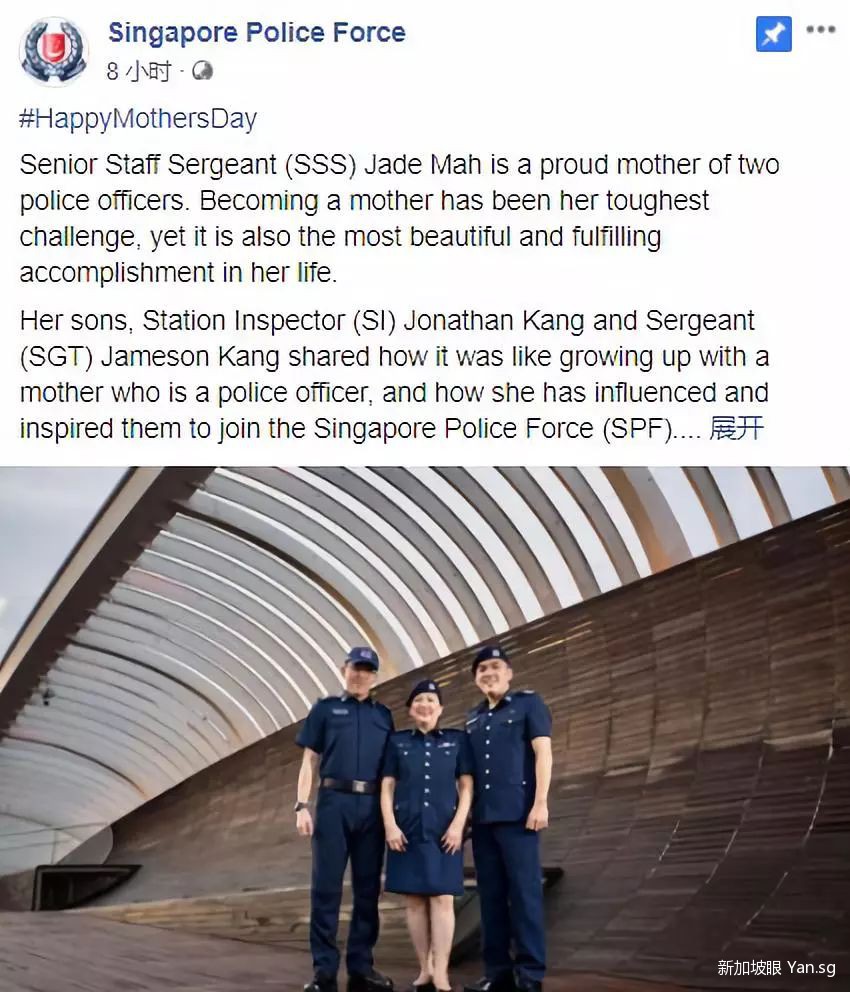新加坡警察部队在这个节日里,特别分享了一个关于一位警察妈妈和两位警察儿子的故事。