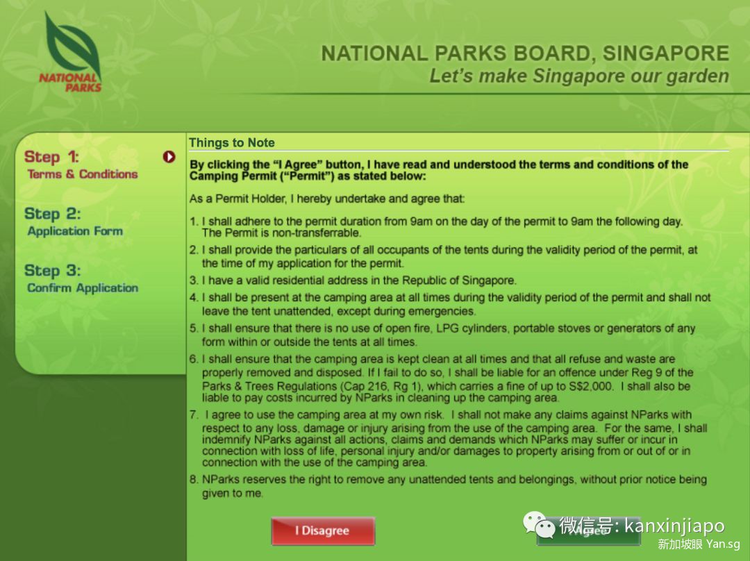在新加坡露营需要向国家公园局(National Parks)申请许可证,其实也很简单,点击阅读原文 Read More,上AXS网站申请,然后到全岛任何一家AXS机打印收据即可。