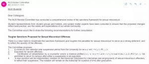 从邮件内容可以看到,NUS采取了更严厉的措施惩罚不端性行为的学生: