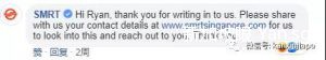 这名网友的抱怨连新加坡地铁公司SMRT官方都被惊动了,在帖子下面留言让网友上SMRT官网留下联系方式。