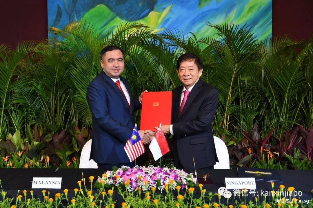 ▲马来西亚交通部长陆兆福(左)和新加坡交通部长许文远(右)在协议仪式上,图源:许文远脸书