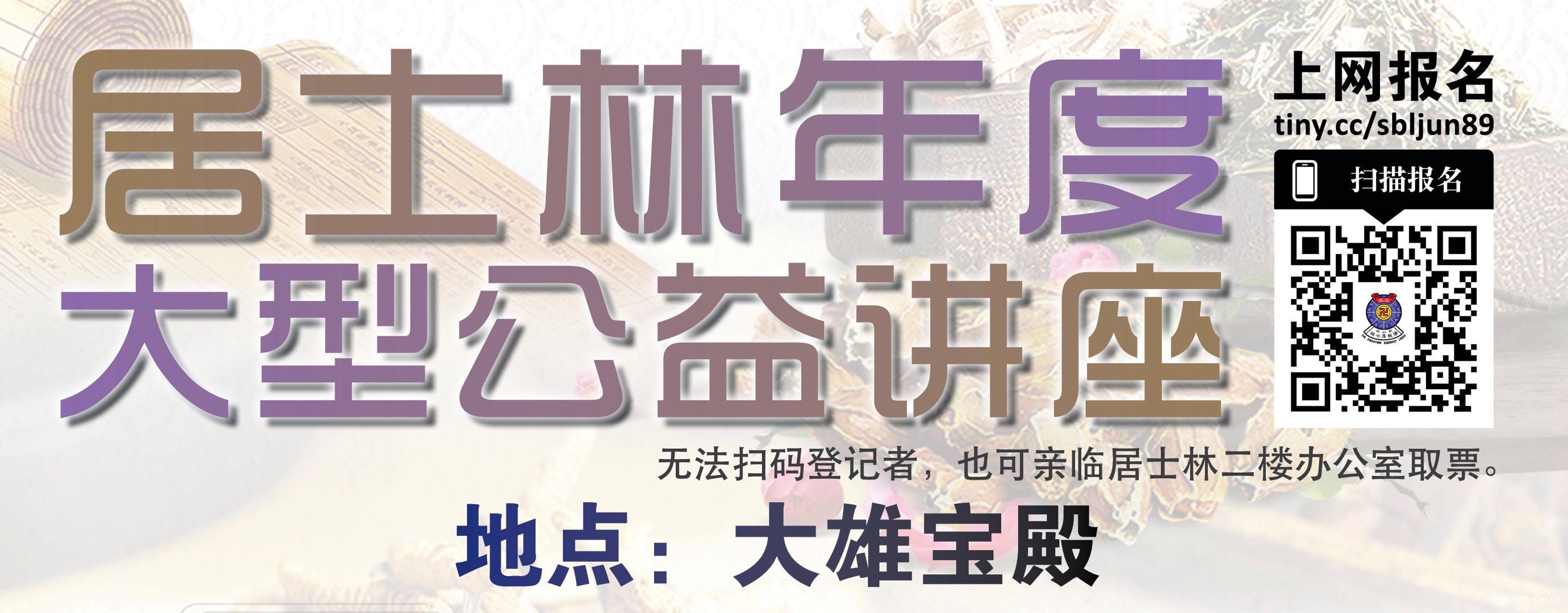 本次公益讲座由新加坡佛教居士林主办。新加坡佛教居士林是本地最有影响的慈善机构之一,自1934年成立至今,已跨入第85个年头。新加坡居士林以弘扬佛法、慈悲济世为宗旨。长期致力于弘法利生、慈济福利、教育文化、医疗服务等,惠利众生,使彼离苦得乐。