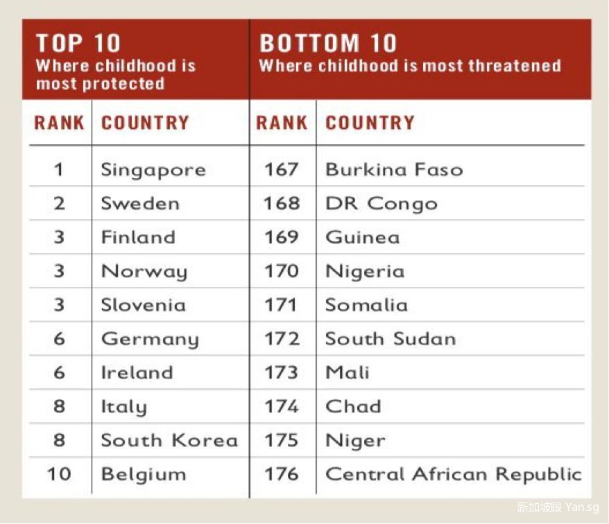 昨天(5月29日),慈善组织“救助儿童会”最新公布的2019报告显示,新加坡再一次成为全世界最适合儿童成长的榜首国家。