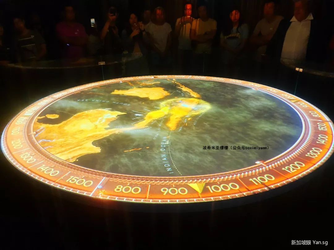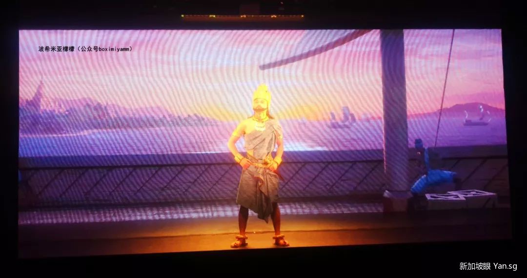 海上贸易带来的繁荣、衰败,王国的建立,兴替,从圆柱水幕开始,一起追溯至700年前,观众们被水幕的倒流水珠,带入了一间长形剧场,这一部分的亮点是由真人演员与电子布景相结合,有虚有实,虚实互相渗透,令人耳目一新。