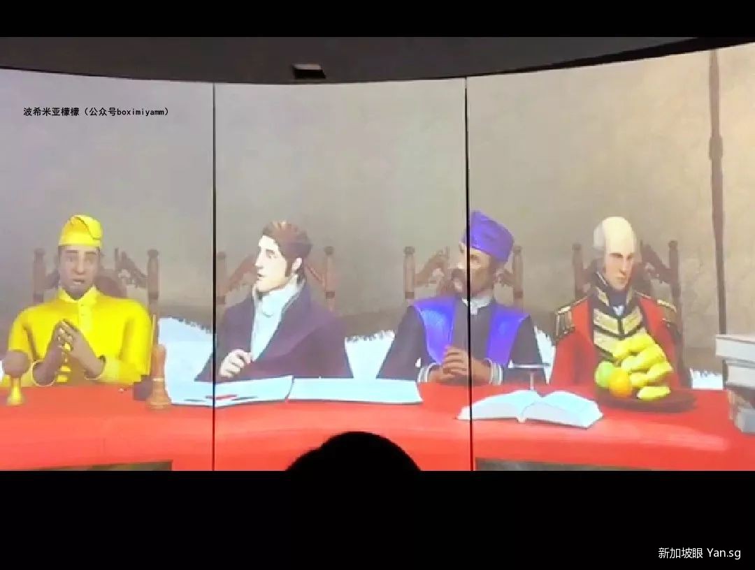 The Bicentennial Experience,时空旅者,在室内进行,全长一小时,每场可容纳60名观众,在等候进场时,可以免费借用不同语言的解说机,整体语言解说为英文,我特别选了华文解说机,当第一句解说词响起,我就听出这是十几年的偶像——林安娜!后来询问她,果然是!而且安娜姐还透露,录制的时候没有画面,全凭她自己对于历史情节的想象,情绪和抑扬顿挫拿捏的无比精准,不愧是硬核广播员,我永远的爱豆!