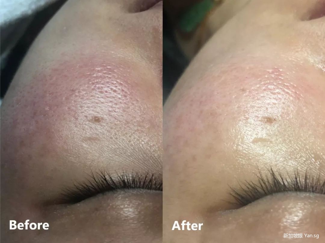 在一系列的清洁和毛孔收缩以及营业液导入之后,皮肤很明显的看到了改善!