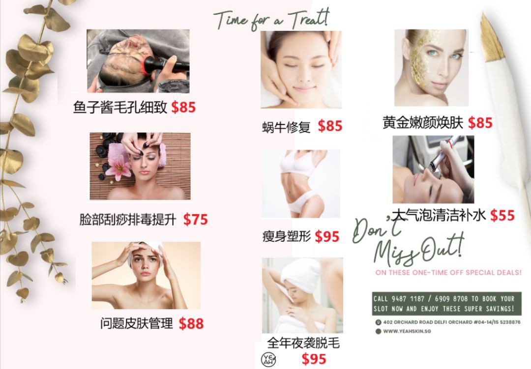 2、福利①和②需提前预约,到店购买使用,预约电话:69098708/94871187,预约微信yeahskin;