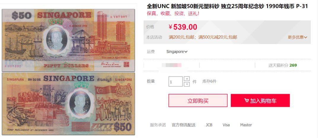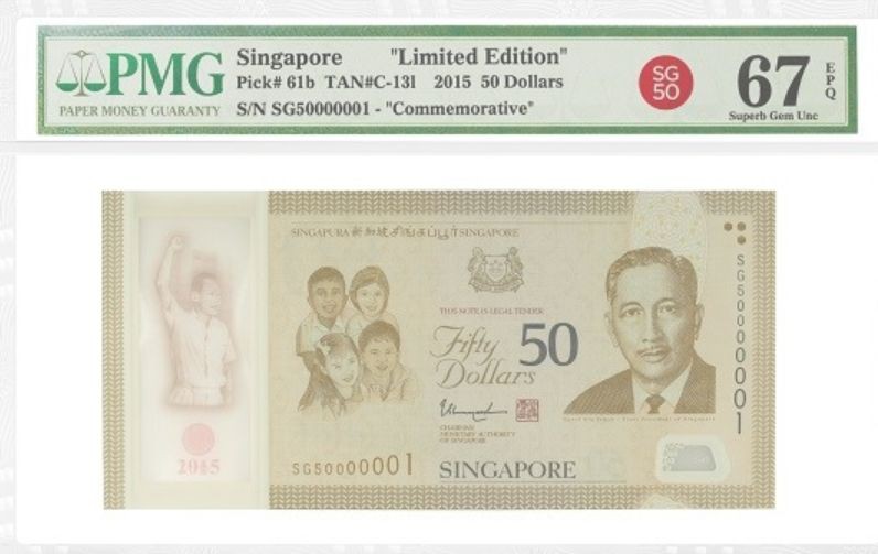 去年在Mavin International拍卖会上,一枚序列号为000001的新加坡建国50周年的纪念钞,便拍出了552,000新币天价!轰动了整个新加坡。