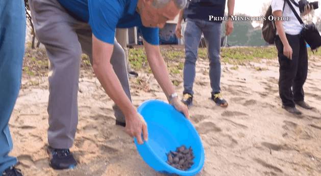 在这里,总理还亲手放生了一批小海龟