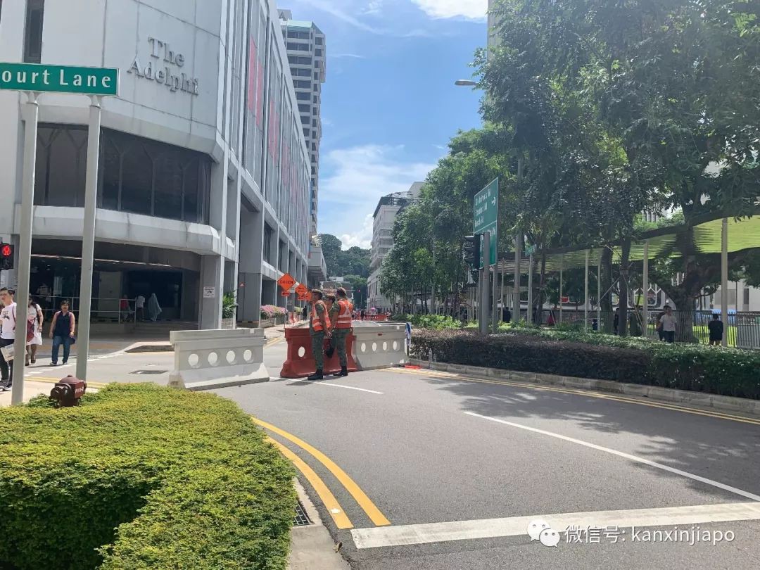 其实不止坦克挡路。为了国庆庆典彩排,新加坡市中心今天到处都在封路。