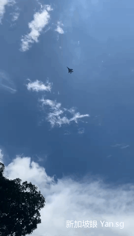 抬头再一看,飞机刚好掠过湛蓝的天空。飞机坦克都出现了,新加坡这是出啥大事啦?!