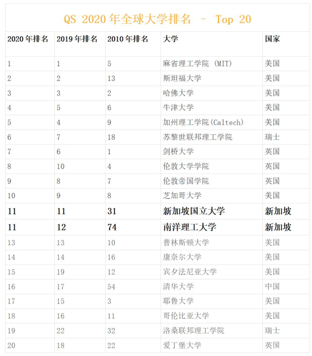 全球大学排行出炉!新加坡两所大学并列“亚洲第一”,清华碾压耶鲁