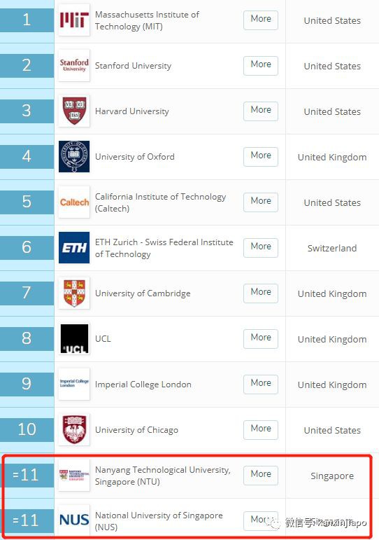 而最新开办的新加坡科学设计大学(SUTD),或许是因为办学时间过短没能搜集足够资料,还未在这次QS大学排行榜中上榜。