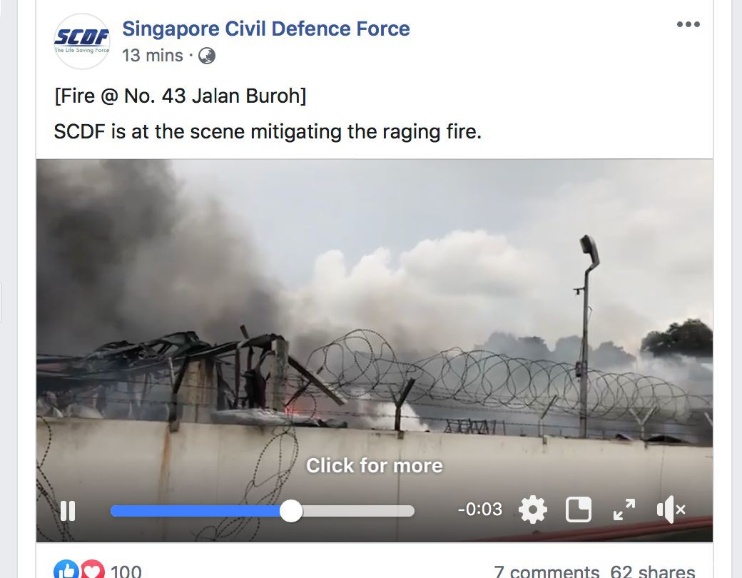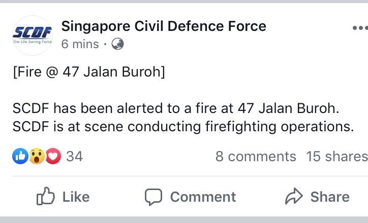 就在刚刚,新加坡民防部队确认爆炸地点在Jalan Buroh附近的43号。