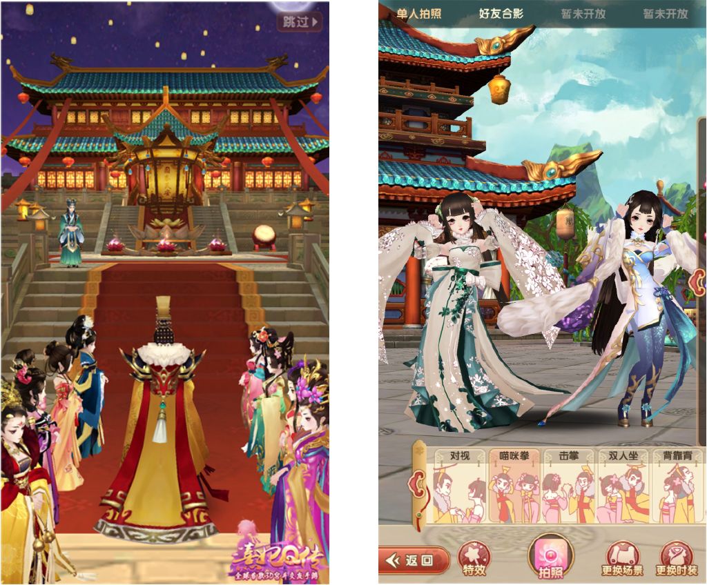 完美的剧情需要完美的画面来呈现,在《熹妃Q传》全新3D引擎效果展示下,大到拔剑出鞘,小到风吹衣角,一颦一笑尽收眼底,编织你独一无二的宫廷情缘。