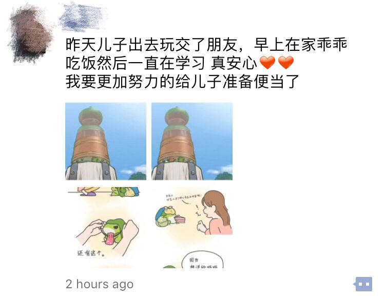 朋友圈里,好多像我一样的老母,每天晒着她家蛙儿子的日常: