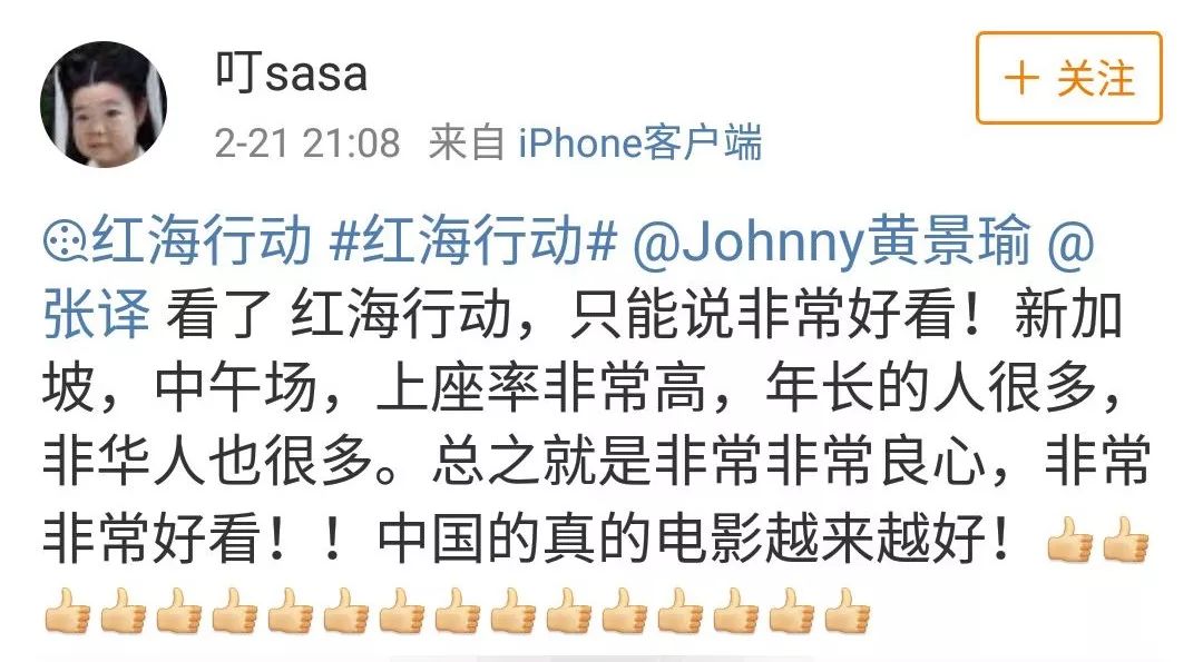 在新加坡观影的网友,反响也非常好~