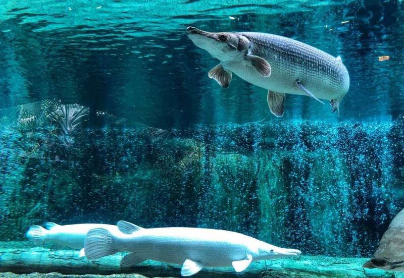 以图中亚马逊流域和尼罗河流域为例,透过玻璃窗我们既能看到水下的生态结构,也能看到岸上的人文景观、建筑特点。对小朋友们来说,是一次不错的地理生物科普之旅。