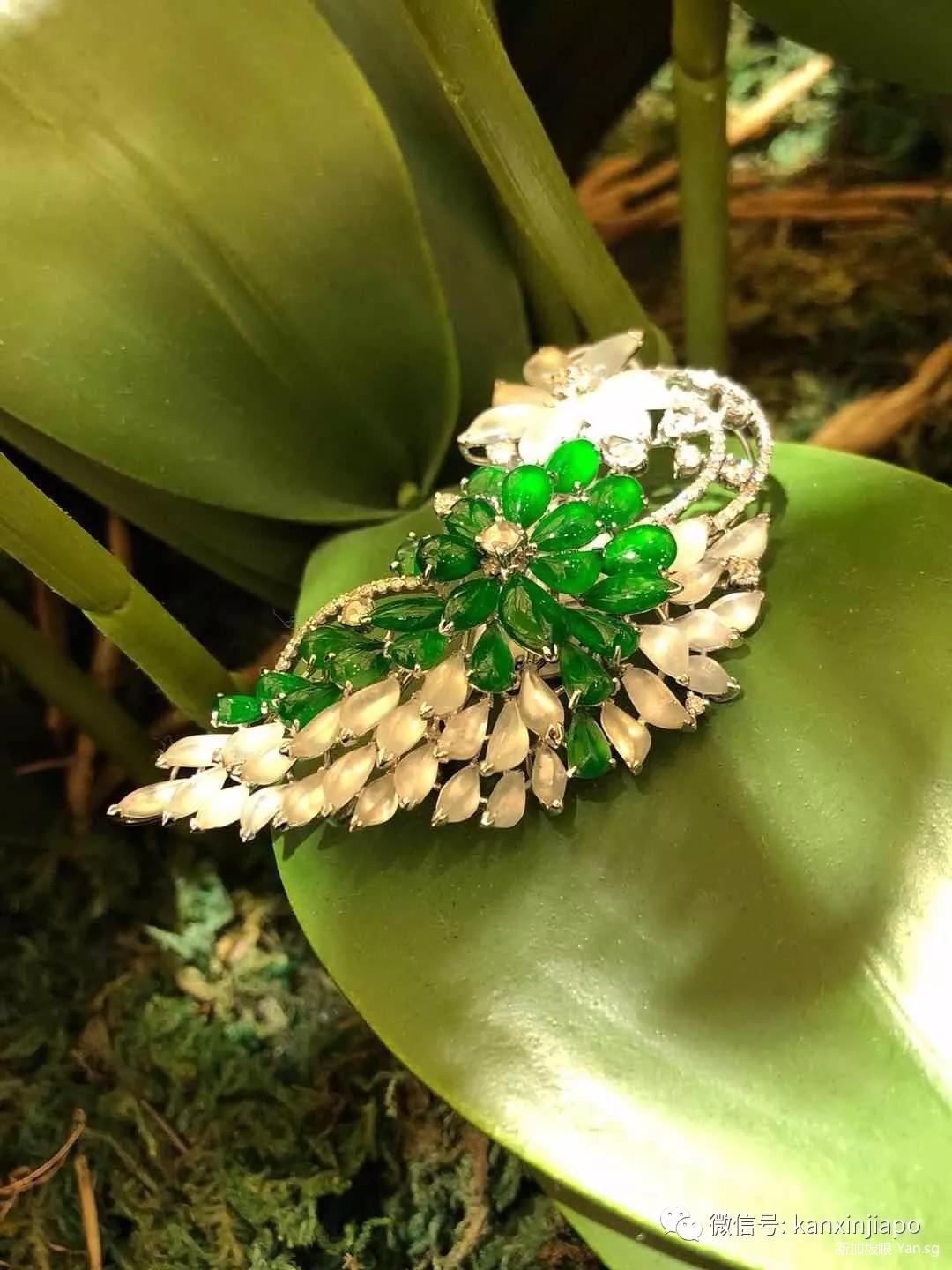 杨紫琼戴的翡翠耳坠和胸针高贵典雅,西方现代审美,加上马来、印尼等各种民族因素影响,形成了独特的南洋派珠宝首饰风格。