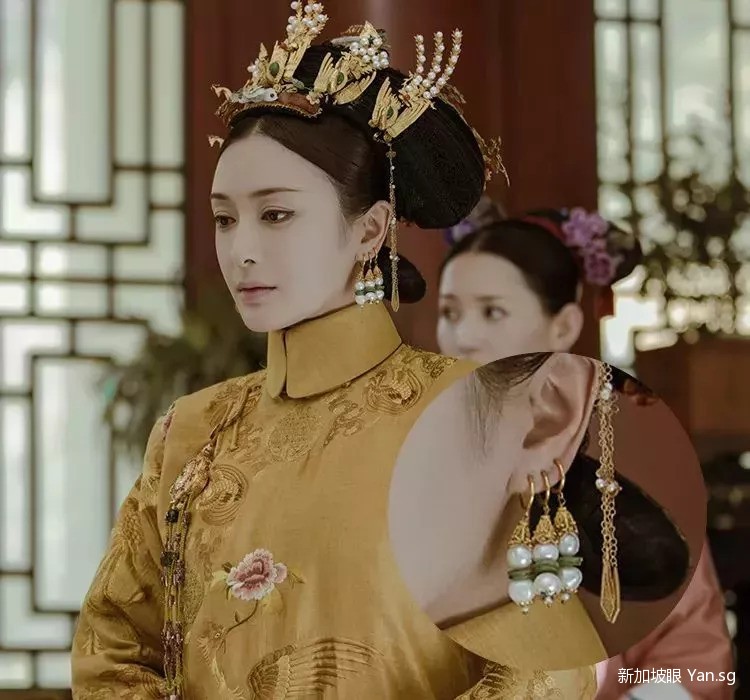 《延禧攻略》还原了满族女子的一耳三钳戴法,只有主子才能佩戴三个耳坠,而宫女只能带一个耳坠,两个环,仅仅从耳饰的佩戴上也能分辨出人物的地位阶级。
