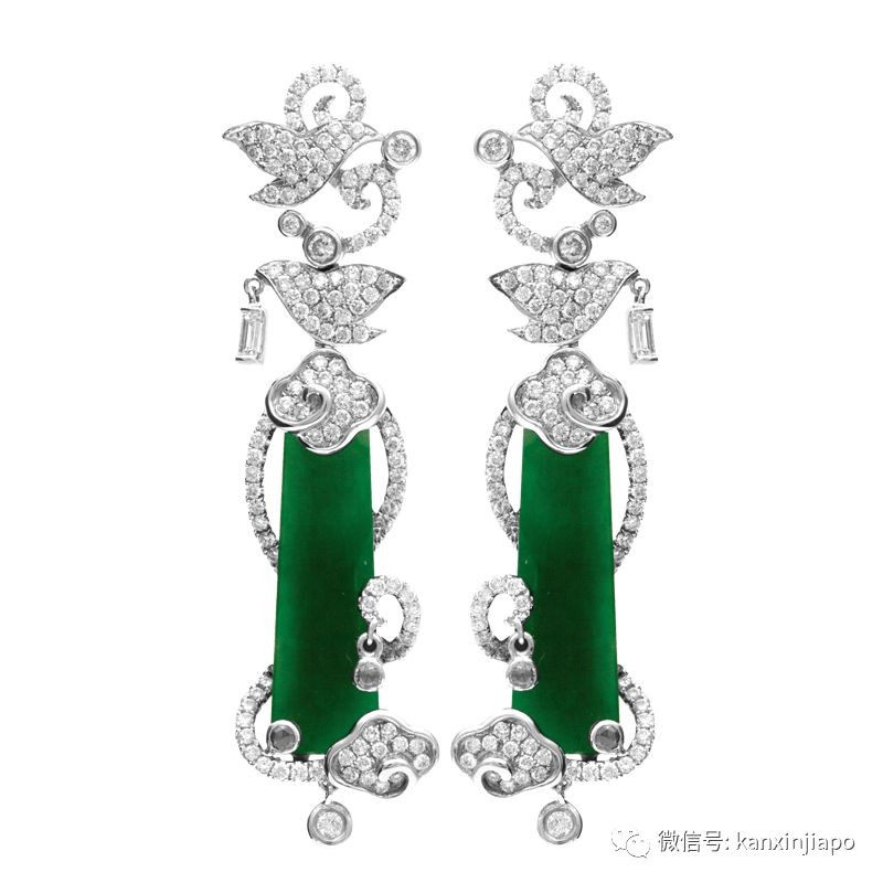 名为“云花”的这款翡翠钻石耳坠,是很符合南洋审美的,毕竟在讲究风水的南洋,带着吉祥寓意的祥云,向来格外受青睐。