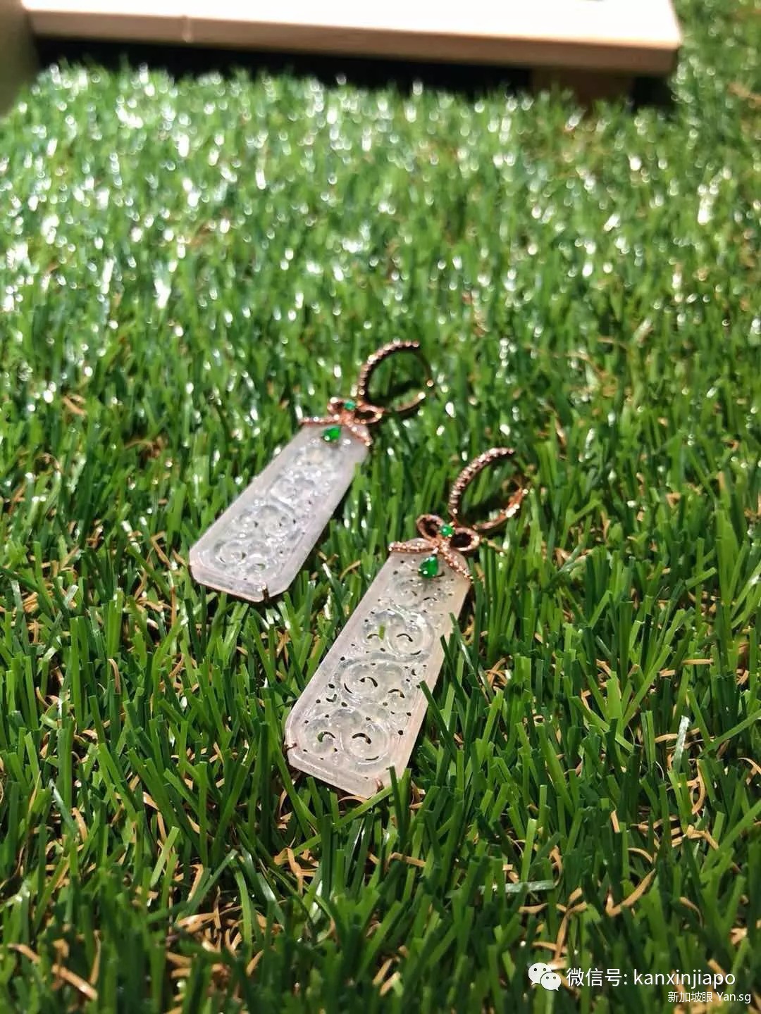 复古宫廷风透明的冰翡翠上雕上精致的花纹,一点点绿色的翠点缀,看起来高贵典雅,这副耳坠一戴上,分分钟就觉得自己是宫里头的小主了有木有?
