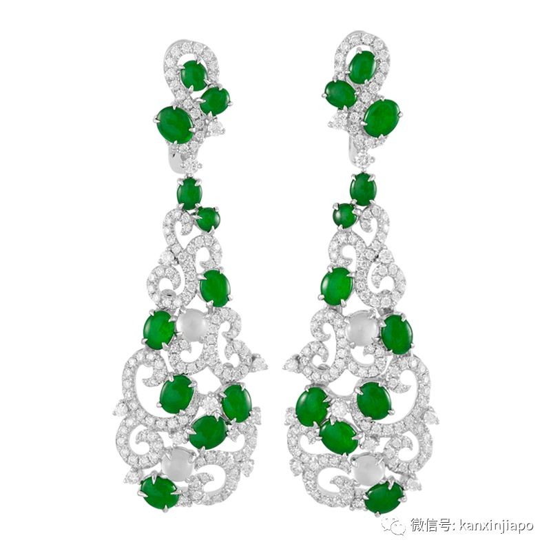 这款名为“翱翔”的翡翠钻石耳坠,戴在耳朵上搖曳生姿,乍一看就觉得完全是从清宫皇室中走出来的啊!