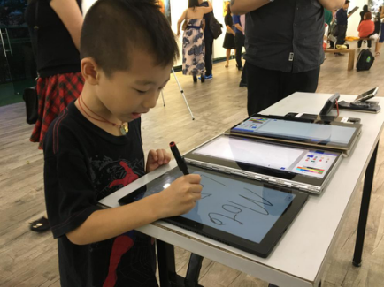 活动现场的小艺术爱好者Leo对由联想&摩托罗拉支持的绘画创意体验环节非常感兴趣。