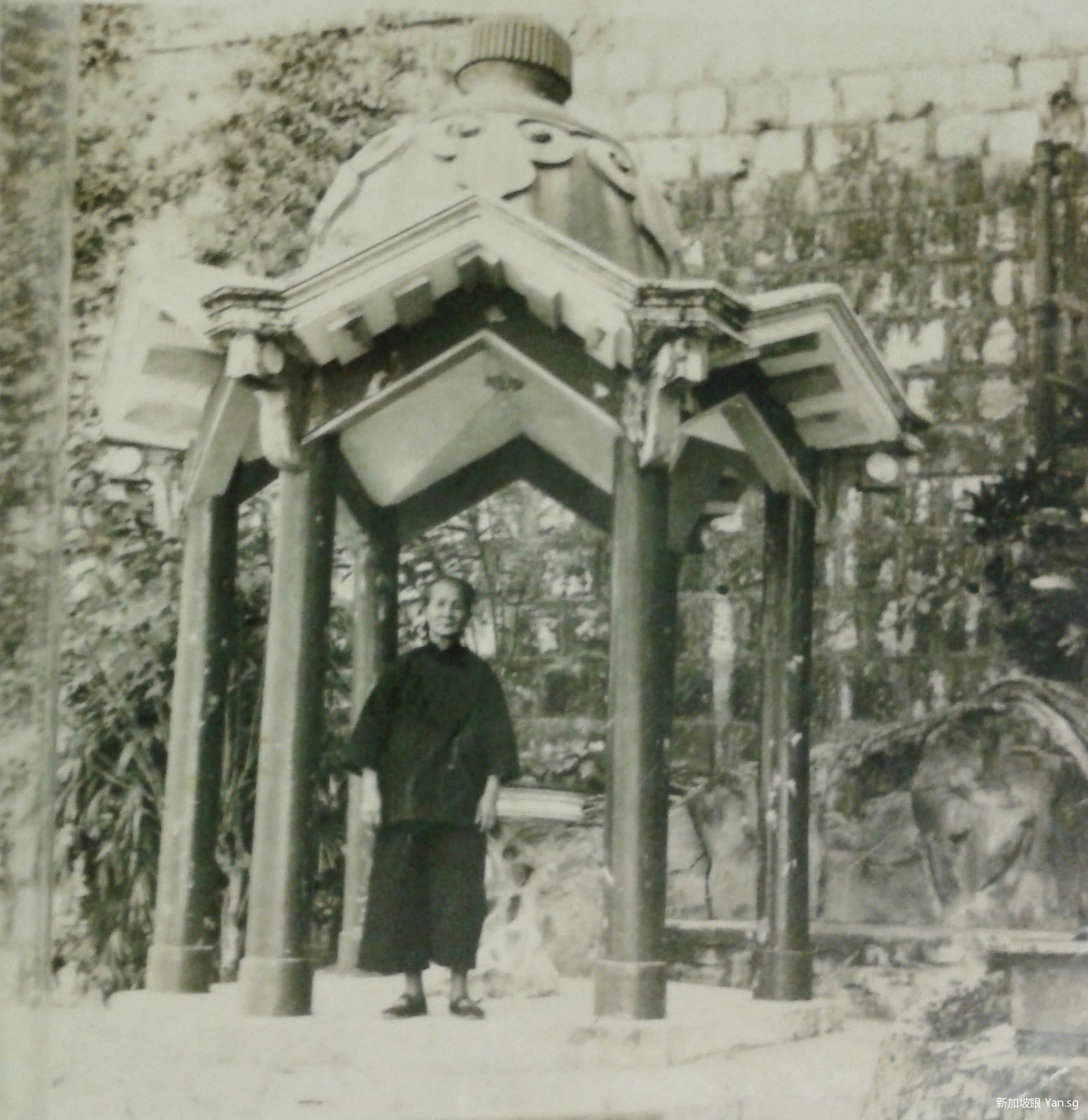 (经过多年的转折,阿嫲重回新加坡,在当年的虎豹别墅留影。阿嫲未及60岁,看起来像是80岁的妇人,这是当年常见的现象。c.1959)