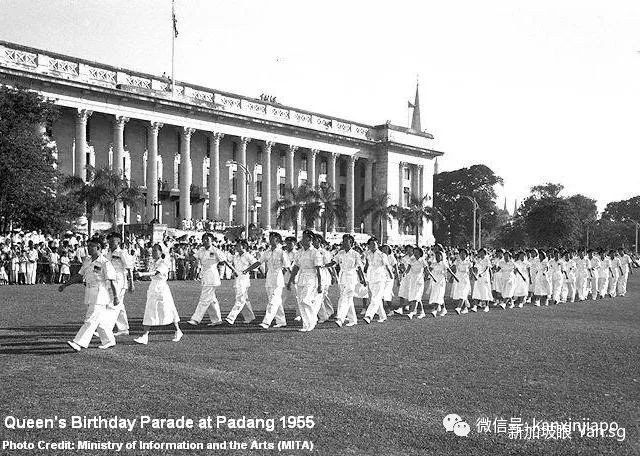 1955年在新加坡政府大厦前大草场举行的英女王诞辰日庆祝活动。