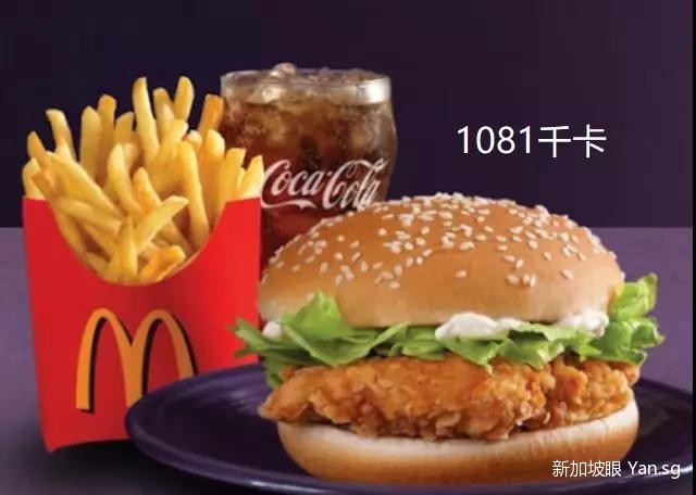 如此算来,如果你点了一个香辣鸡腿堡套餐,也就是一个汉堡+一包中薯+一杯中杯可乐,你就摄入了 522+346+213=1081kcal!