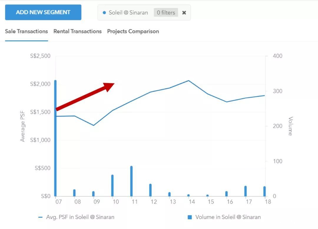 ↑ Soleil @ Sinaran 从出售到竣工时价格上升幅度最大