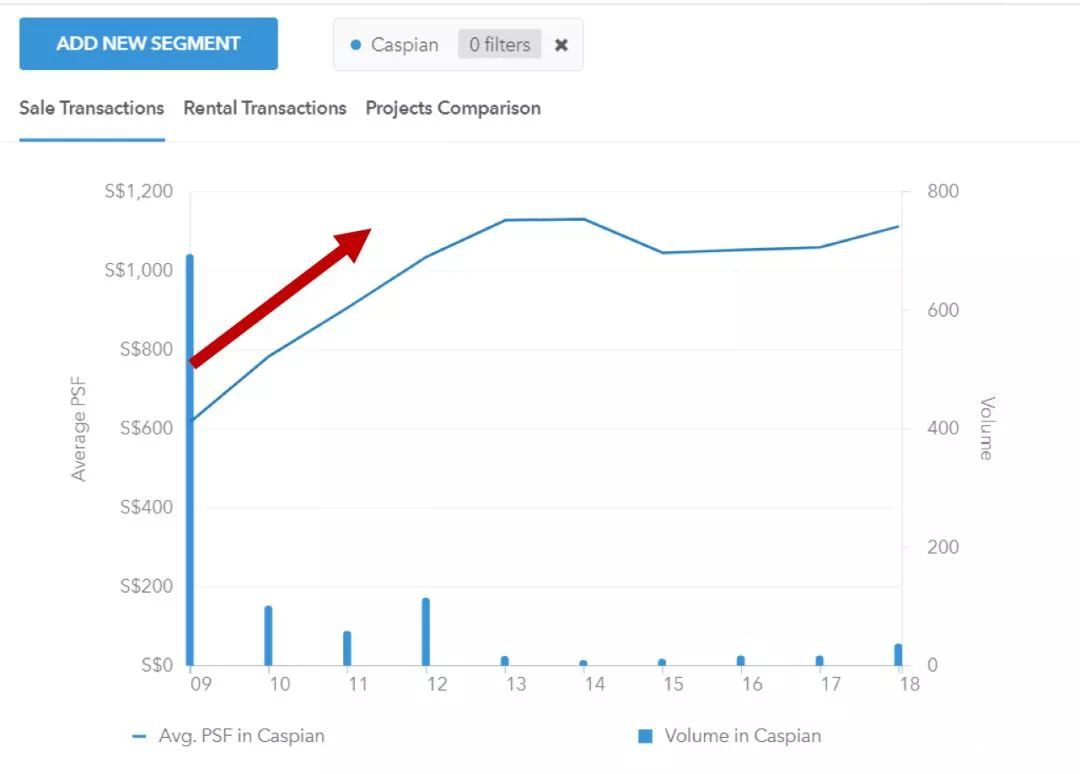 根据历史趋势,价格合理的项目更有可能在最初几年为业主带来最大的资本收益。(附上一些价格图表:这些楼盘价格增长幅度最高的时候都是在项目出售到竣工期间)。