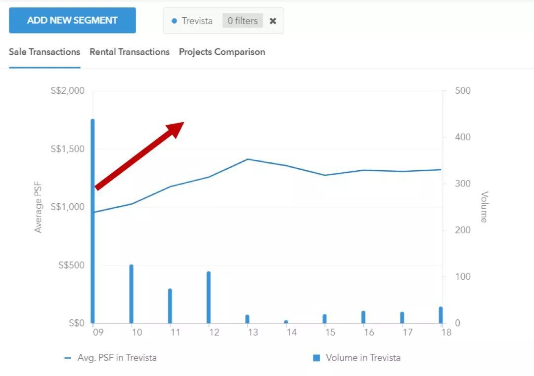 ↑Trevista 从出售到竣工时价格上升幅度最大