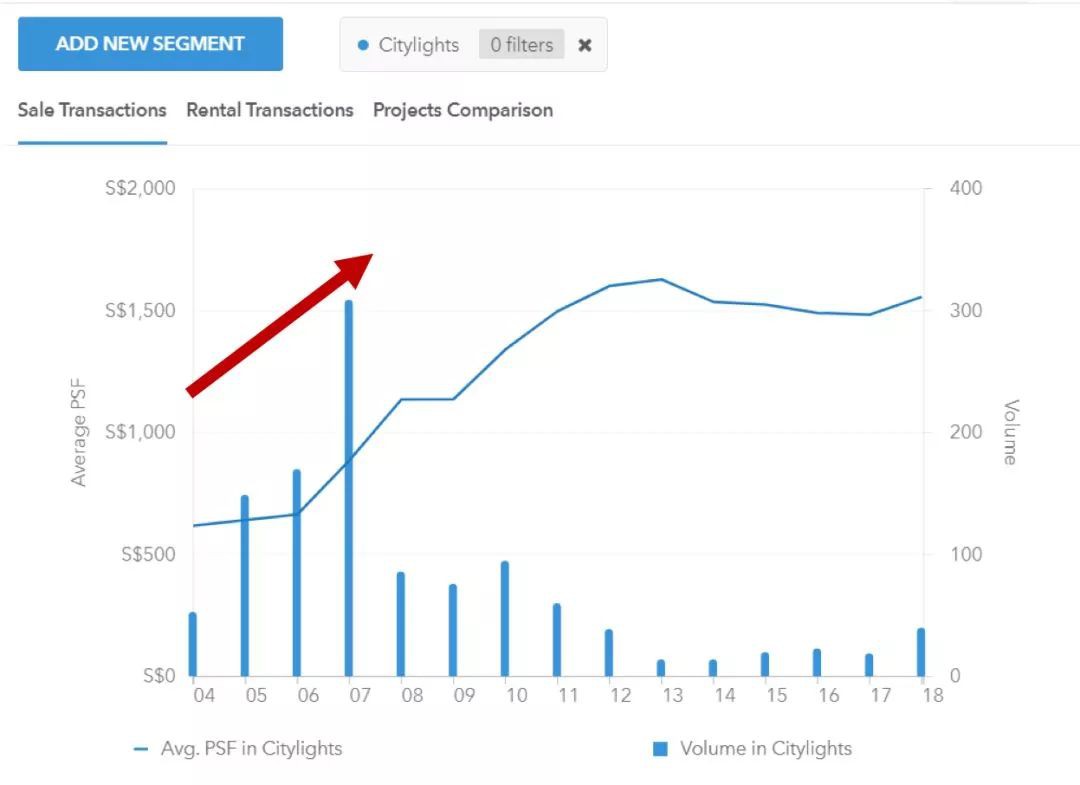 ↑Citylights 从出售到竣工时价格上升幅度最大