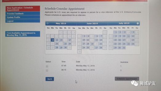 确认提交以上资料全部输入,确认正确无误,提交申请,之后就是付款,建议工作日,工作时间申请,这样过账比较快。面签日期与时间顺利过账之后就可以预约面试日期和时间了,建议周末不要去预约。工作日每天中午就会放出最近的可选择日期和时间,我是星期一中午预约到星期二早上的面试时间。