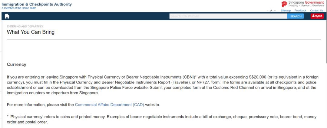 所以大家从新加坡出境的时候,如果携带了大额现金,一定要注意备案。同时,也要查清楚要去的目的地国家的入境规定,以免不小心触犯当地法律。