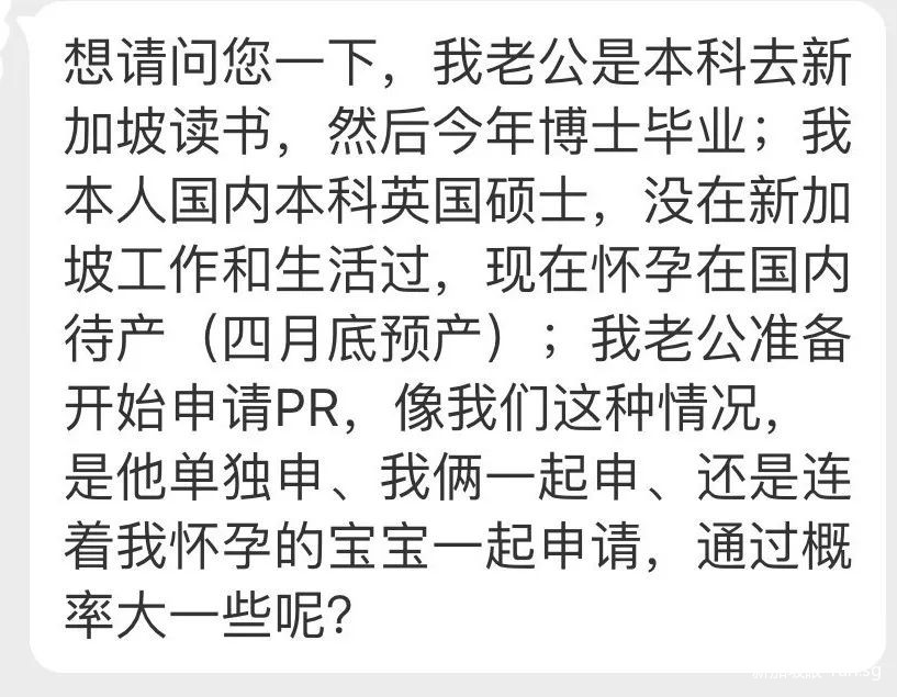 新加坡眼接到网友来信说,丈夫是新加坡博士毕业,自己在中国待产,目前准备申请PR,想问一下,是丈夫单独申请,还是夫妻俩一起申请,还是带着宝宝一家三口申请?哪个成功率比较高?