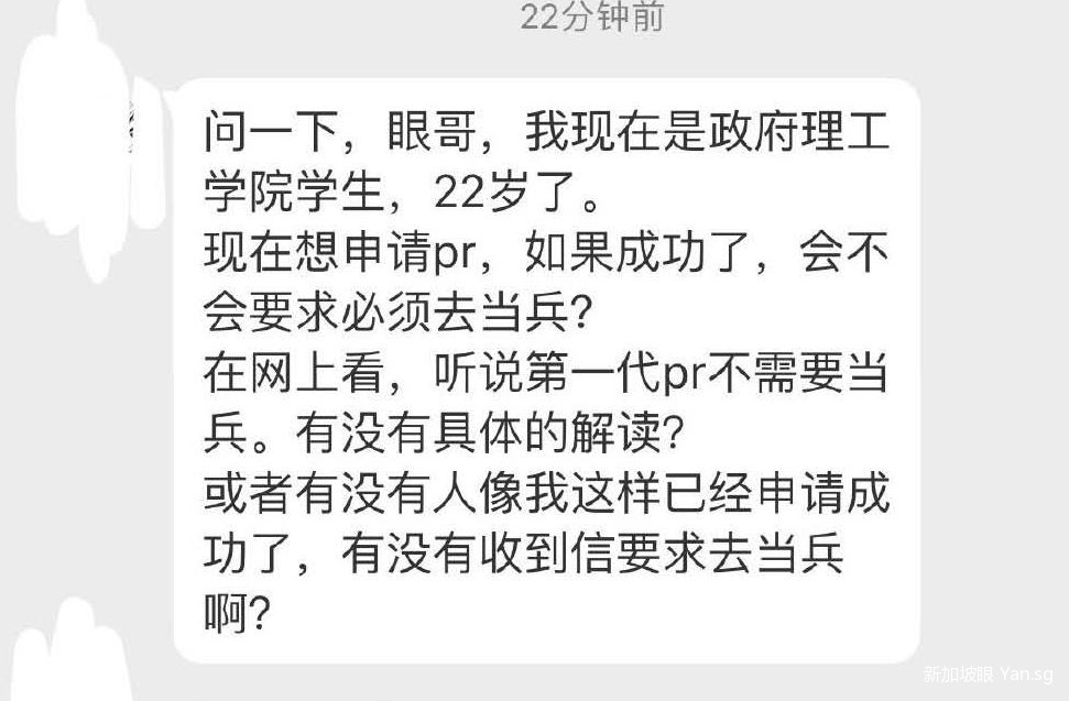 新加坡眼收到网友求助,询问在新加坡的理工学院(poly)拿到新加坡PR后需不需要服兵役等事宜。