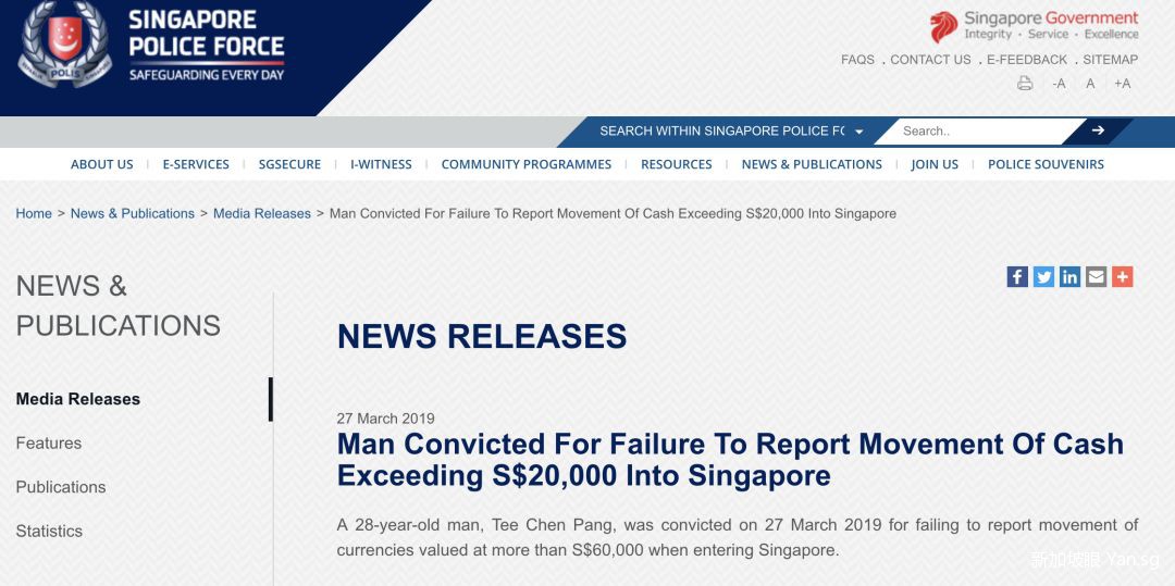 男子带60000新币入境就被狠罚5000!带钱来新加坡要小心……