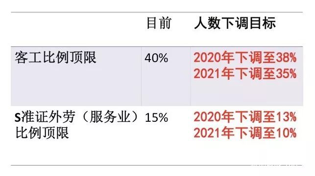 服务业的客工比率顶限将分两次逐步下调:2020年从40%下调至38%,2021年下调至35%!