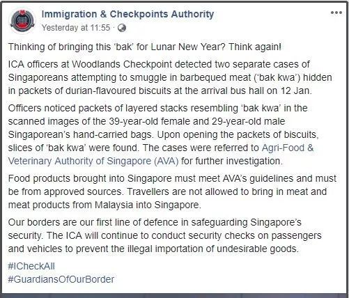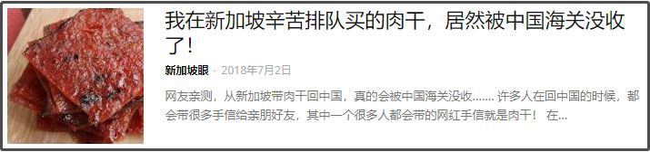 最近,有2名吃货因为背肉干入境新加坡,竟受到了政府官方调查,并且可能因此遭受2年的牢狱之灾!