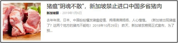 关于原因,一种说法是,最近猪瘟疫情爆发,此举是为了防止瘟疫流入新加坡。(想把家里自制腊肉、妈妈牌肉干带回新加坡的小伙伴高度注意了~最近流年不利)