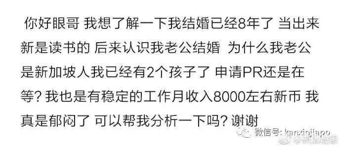 新加坡眼收到网友求助,跟老公(新加坡人)结婚8年,育有两子,现月薪8000新币,但是仍然申请不到PR……