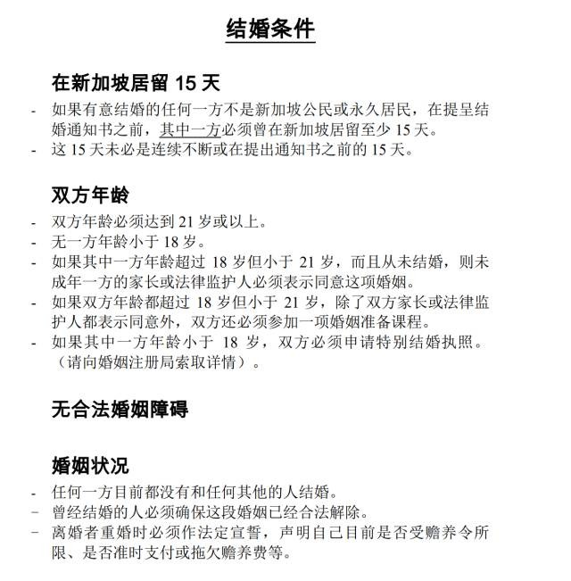 1)结婚男女双方必须均为中国公民,且永久居住在新加坡(即持有效PR者)。
