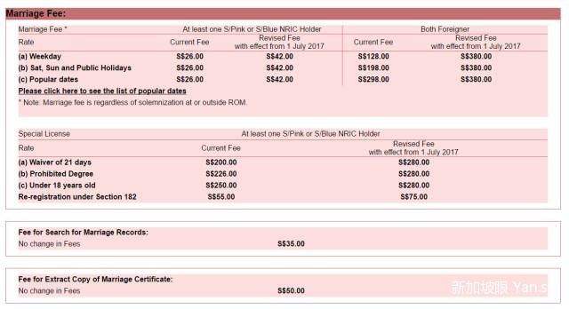 1)结婚对象里,如有一方是新加坡人/PR,价格从26新币升至42新币。