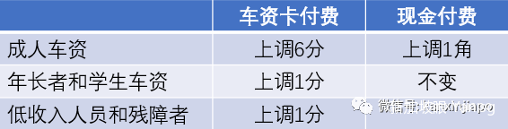 12月29日开始,用车资卡付费的成人,每趟车程需多支付$0.06,以现金付费的,单程车资上调$0.1。