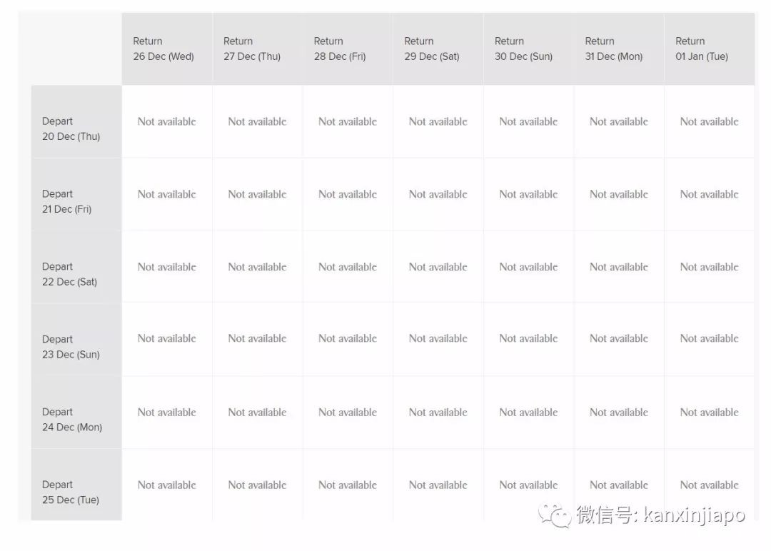 于是,年底回中国航班一票难求,节后回新加坡也一票难求。航空公司订票网站的这种界面大概大家见惯了: