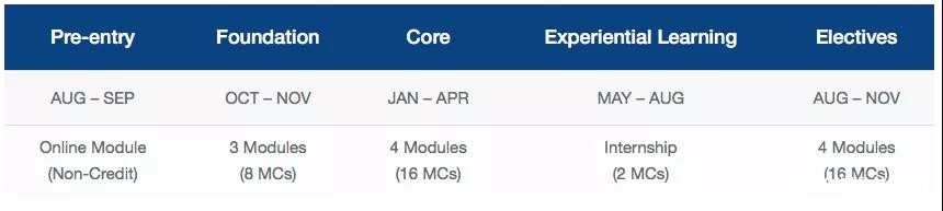 这个项目需要在四个小学期内完成的课程更多,包括12门核心课程,4门选修课程。但有两个学期在SMU学习,有两个学期在英国卡斯商学院(Cass Business School)学习。