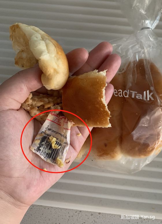 在新加坡买的面包吃出条形码,这是要“中奖”了吗?